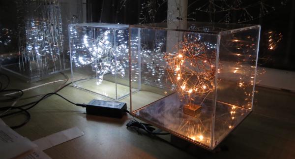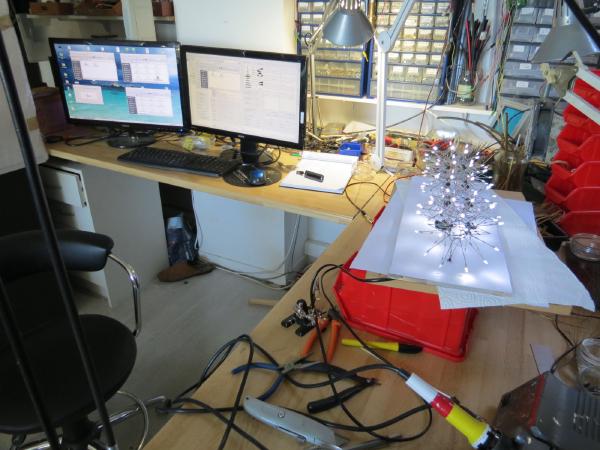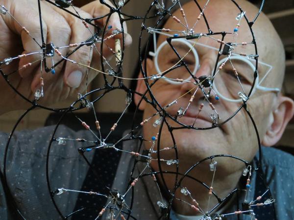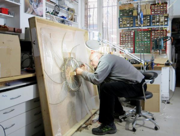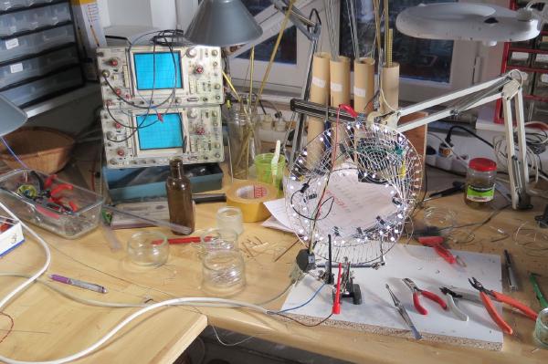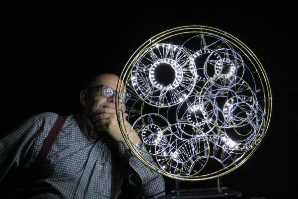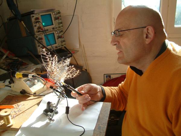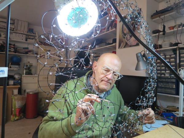 Parfois j’ai l’impression que mes mains et les tiges de métal n’ont pas besoin de moi. Le casse-tête vient ensuite quand je dessine les liens entre les petits composants. D’un coup la lumière est là, et j’ai le plaisir de composer. Comme le son, la lumière se prête à des combinaisons infinies.